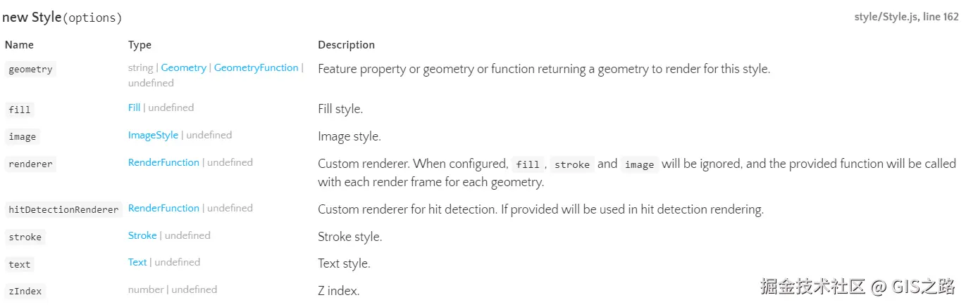 在Style对象中可以设置要渲染的几何对象geometry、要素填充样式、描边样式以及点要素样式和文本样式等。