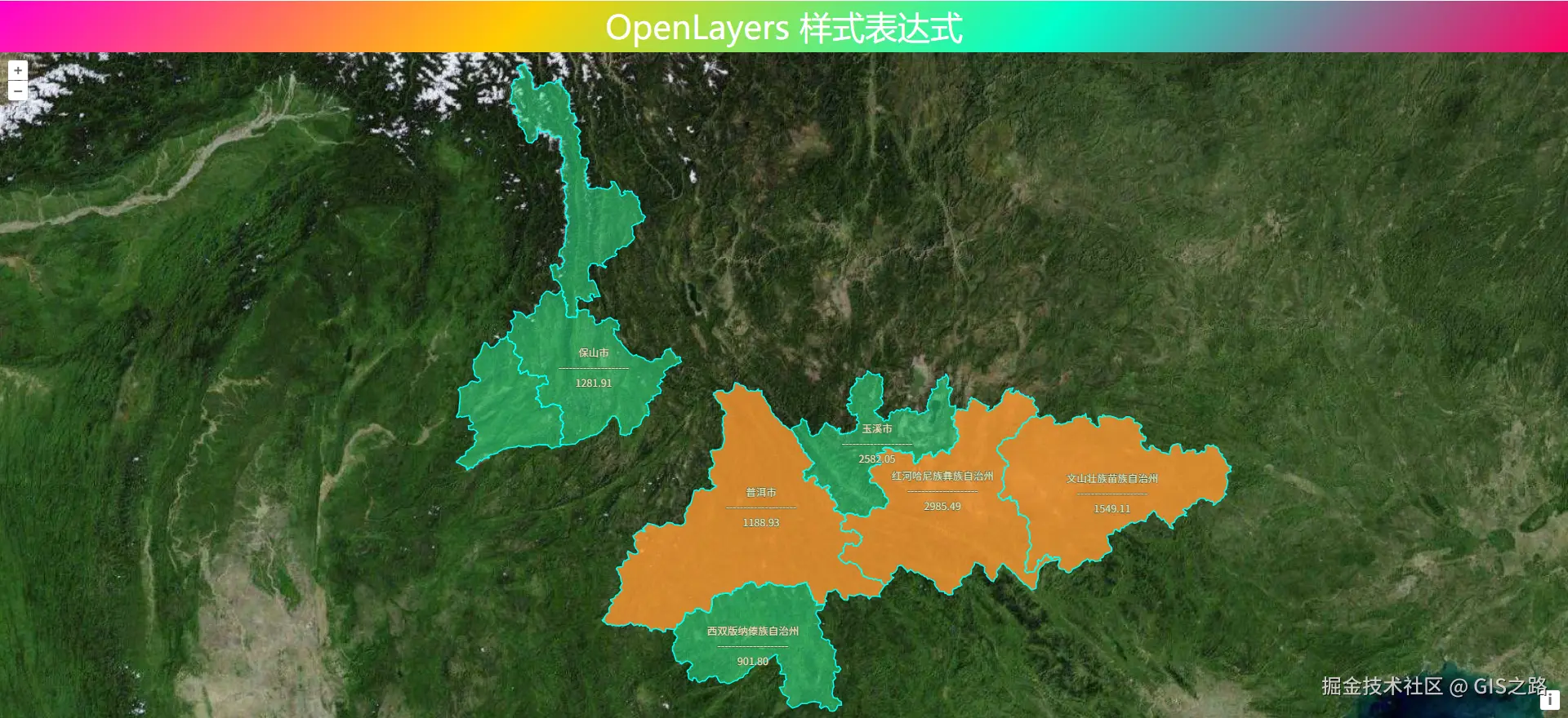 数学表达式是连接数据与可视化、逻辑与操作的核心纽带。能够动态处理要素属性、地图状态和用户交互数据,显著增强地图的可视化能力和交互灵活性。详情可以参考文章:OpenLayers 数学表达式