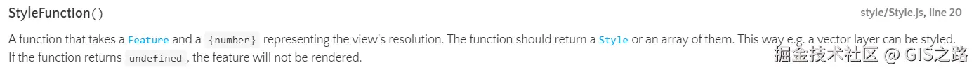 样式函数接收一个要素和一个表示视图分辨率的数字。使用该函数应返回一个Style对象或者一个包含Style对象的样式数组。