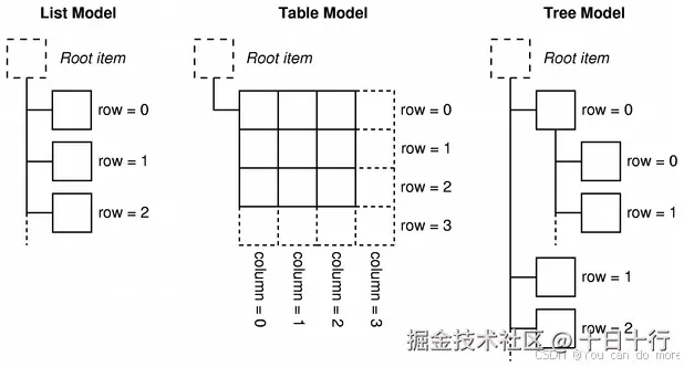 这四个函数必须在所有类型的模型中实现,包括列表模型(QAbstractListModel的子类)和表模型(QAbstractTableModel的子类)。