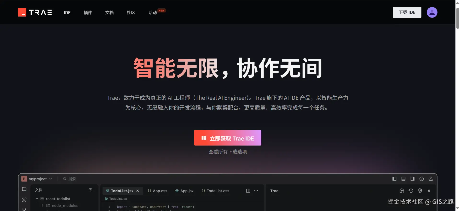 Trae是字节跳动于2025年1月19日发布的一款AI原生集成开发环境(IDE)工具,其国内版于3月3日推出。它致力于成为每位开发者的智能协作伙伴,一个真正的AI工程师,具备自主理解、思考、优化和协作的能力,不再是被动执行指令的工具,而是能与人类深度协作,帮助开发者更快速、准确、高质量地完成开发需求。