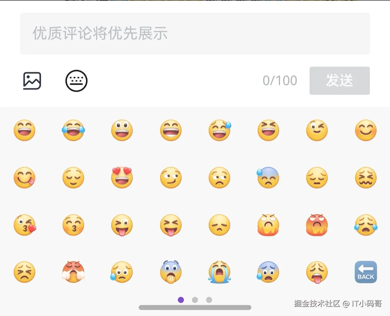 在实现自定义表情键盘的过程中,需要对表情键盘对数据源进行处理,以实现显示页面的整齐效果,同时通过不同的表情类型,实现删除效果和填充空格对齐,已经学会了的小伙伴,赶快动手试试吧。