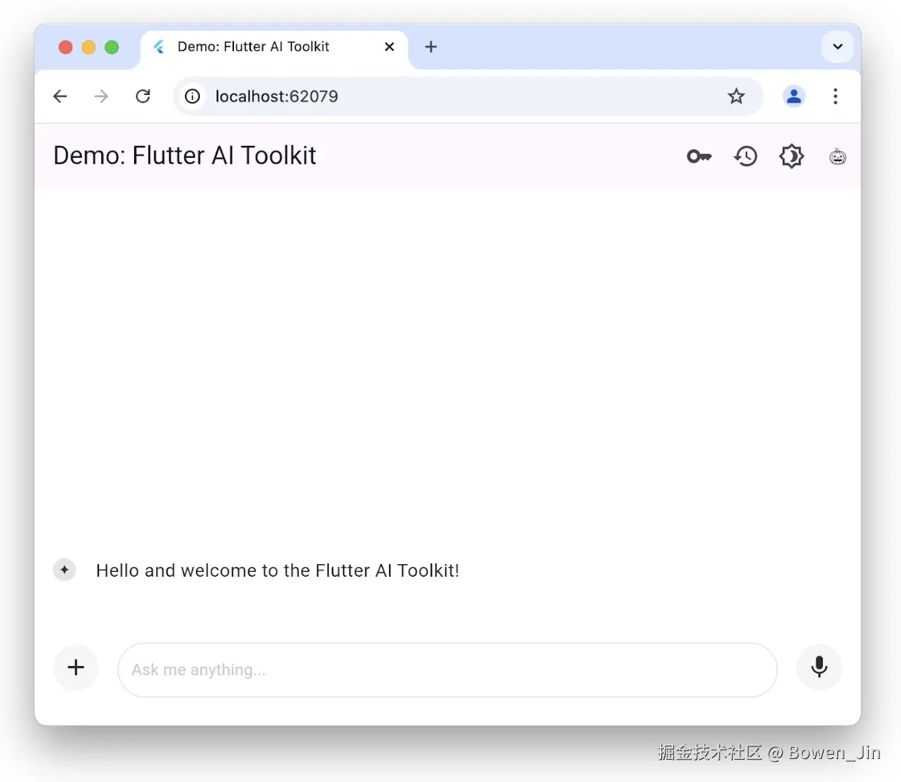 welcomeMessage: 'Hello and welcome to the Flutter AI Toolkit!', //初始化LlmChatView的欢迎消息: