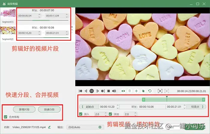 步骤3:录制完需要的视频后,我们还可以使用 “高级剪辑” 工具去剪辑视频。可以直接把视频分段,还可以删除多余的片段。