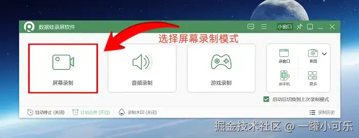 使用数据 蛙录屏软件的操作步骤如下: