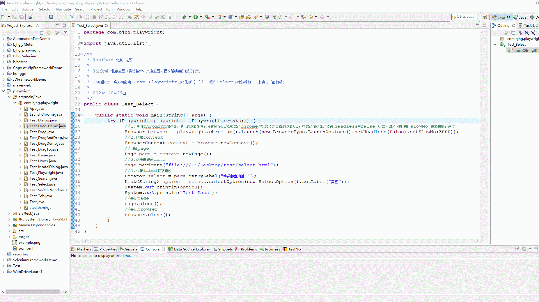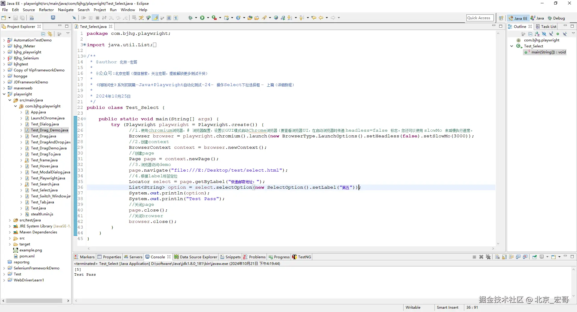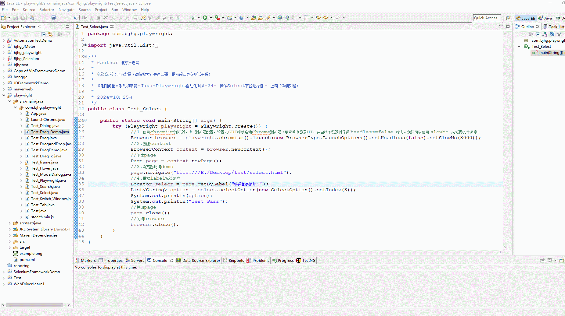 在实际自动化测试过程中,我们也避免不了会遇到下拉框选择的测试,因此宏哥在这里直接分享和介绍一下,希望小伙伴或者童鞋们在以后工作中遇到可以有所帮助。今天,我们讲下playwright的下拉框怎么处理,在使用selenium定位的过程中,我们可以选择使用selenium的Select类定位操作选择框(比较复杂),但是在playwright中真的炒鸡方便,而且我们在Python语言中已经体验过其便利之处,今天跟随宏哥来看一下java语言中是如何通过playwright处理下拉选择框的。