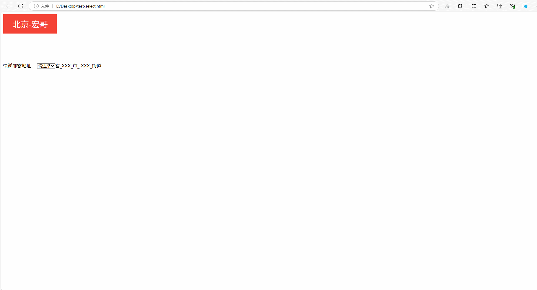 2.运行代码后电脑端的浏览器的动作(下拉选择框选择了“山西”)。如下图所示: