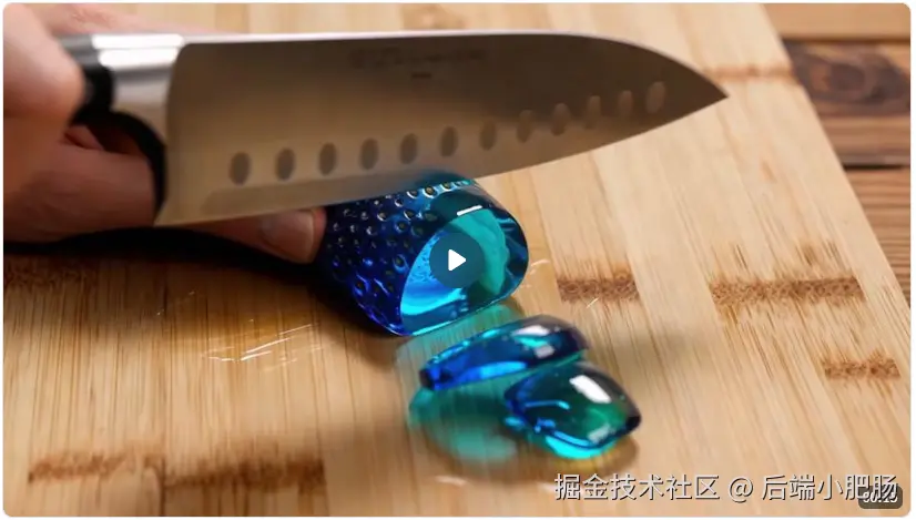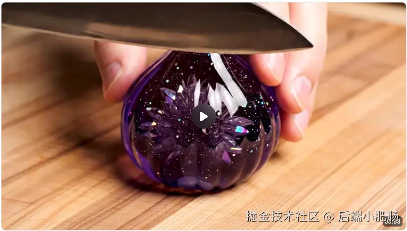 需要注意的是如果你选择了用Coze的文生视频节点来直接产出视频,就需要自己进行视频配音,下面是基于视频生成节点产出是 AI 切水果视频,除了需要自己配音效(网上找一下 asmr 音效就行)效果还是不错的。