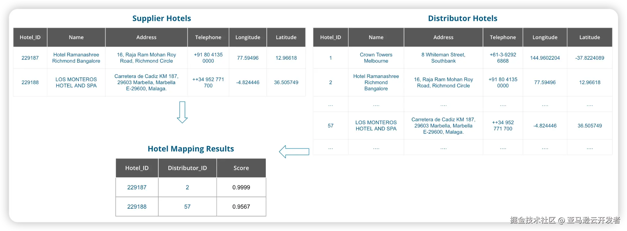 数据标准化:统一不同来源数据的格式、字段定义(如 Hotel Name、Address、Room Type 等),建立标准数据 Schema,降低后续处理复杂度。