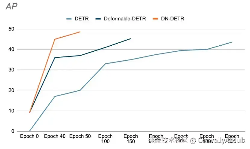 - 显著加快收敛速度(训练 50 epoch 的性能就超过了原始 DETR 的最佳性能);