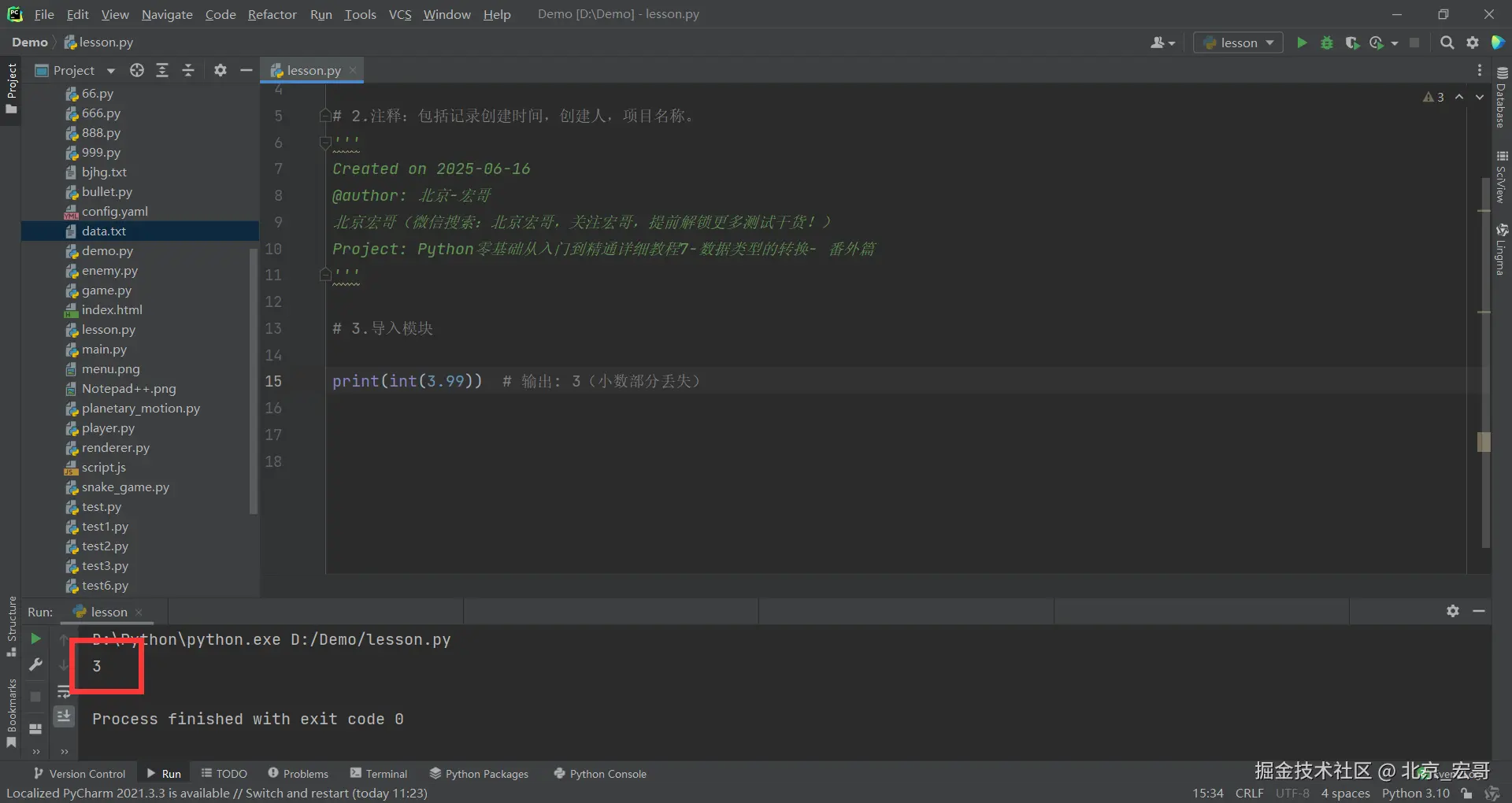 print(int(3.99)) # 输出: 3(小数部分丢失)