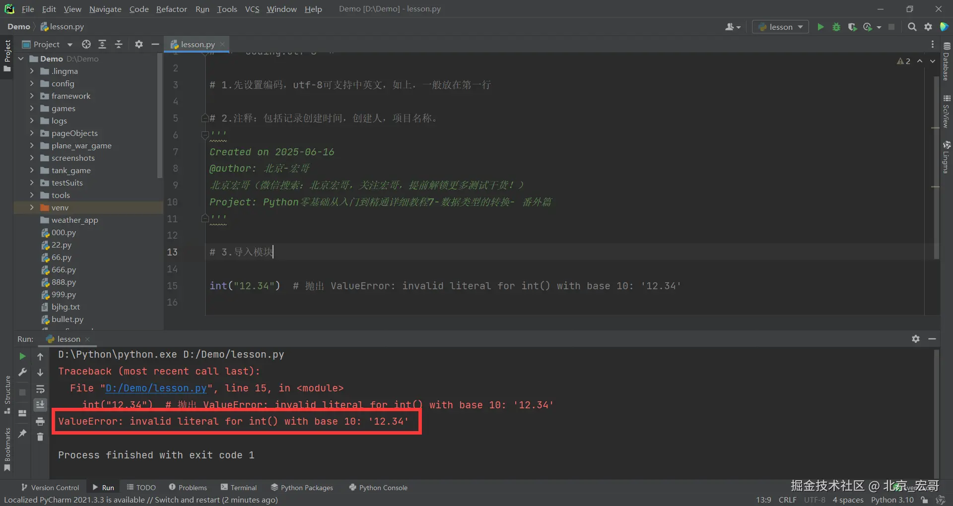 int("12.34") # 抛出 ValueError: invalid literal for int() with base 10: '12.34'
