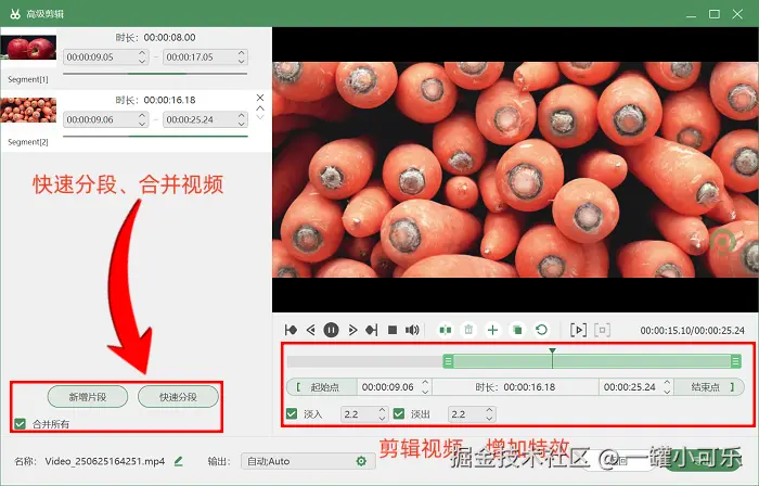 步骤3:录制完成后,你可以直接在预览界面查看录制的视频效果,如果觉得需要调整,还能进入 “高级剪辑” 页面,对视频进行分段、剪辑、添加特效等操作。