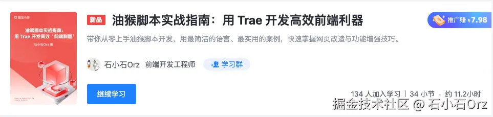 最近我的小册《油猴脚本实战指南》上线了,很多同学都很感兴趣。