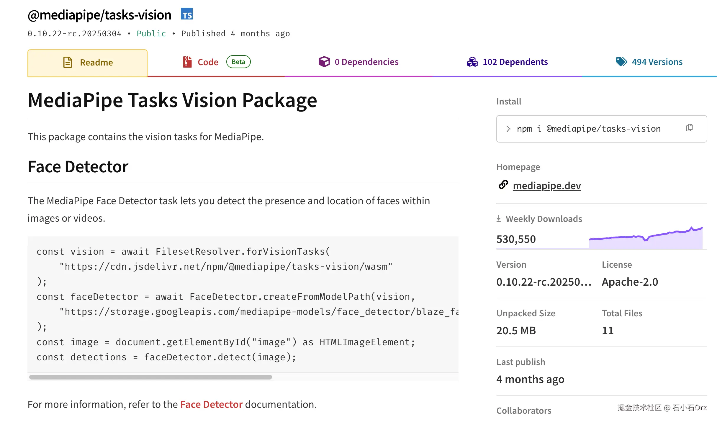 对于手势识别的学习,我们可以去学习官方的demo,在npmjs上,我们可以找到使用说明