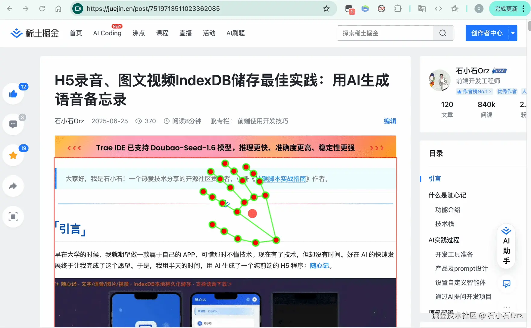 有些人学习后就私下问我,油猴既然能将任意前端js注入到当前网页中,是否能结合手势识别实现任意网页隔空控制,实现类似手机上的隔空翻页功能呢?