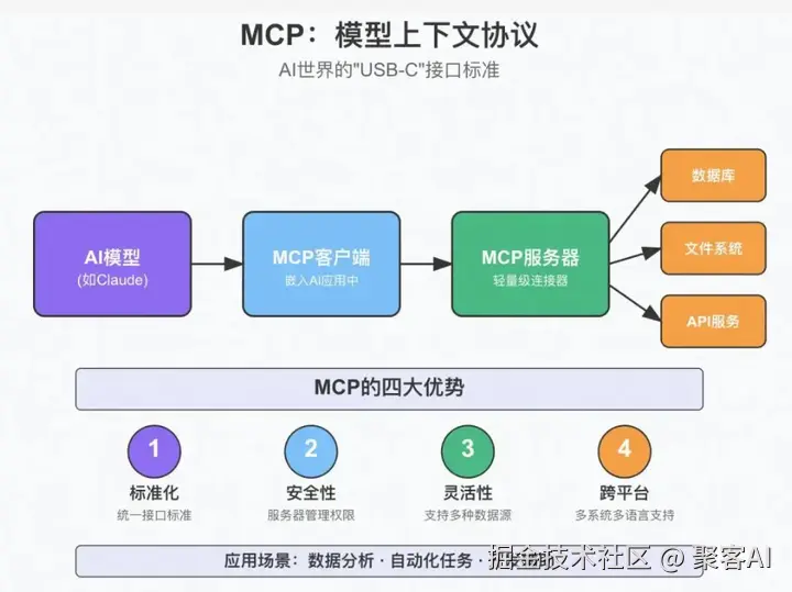想象一下,大模型是个天才实习生,啥都懂一点,但它不认识你公司的数据库、不会用你内部的报销系统。MCP协议,简单说,就是给这个实习生写了一套标准化的“工作说明书”和“操作手册”。