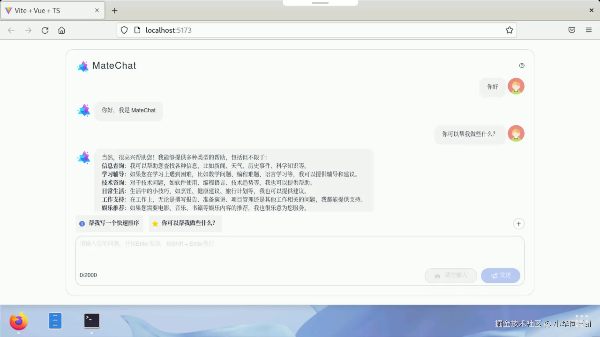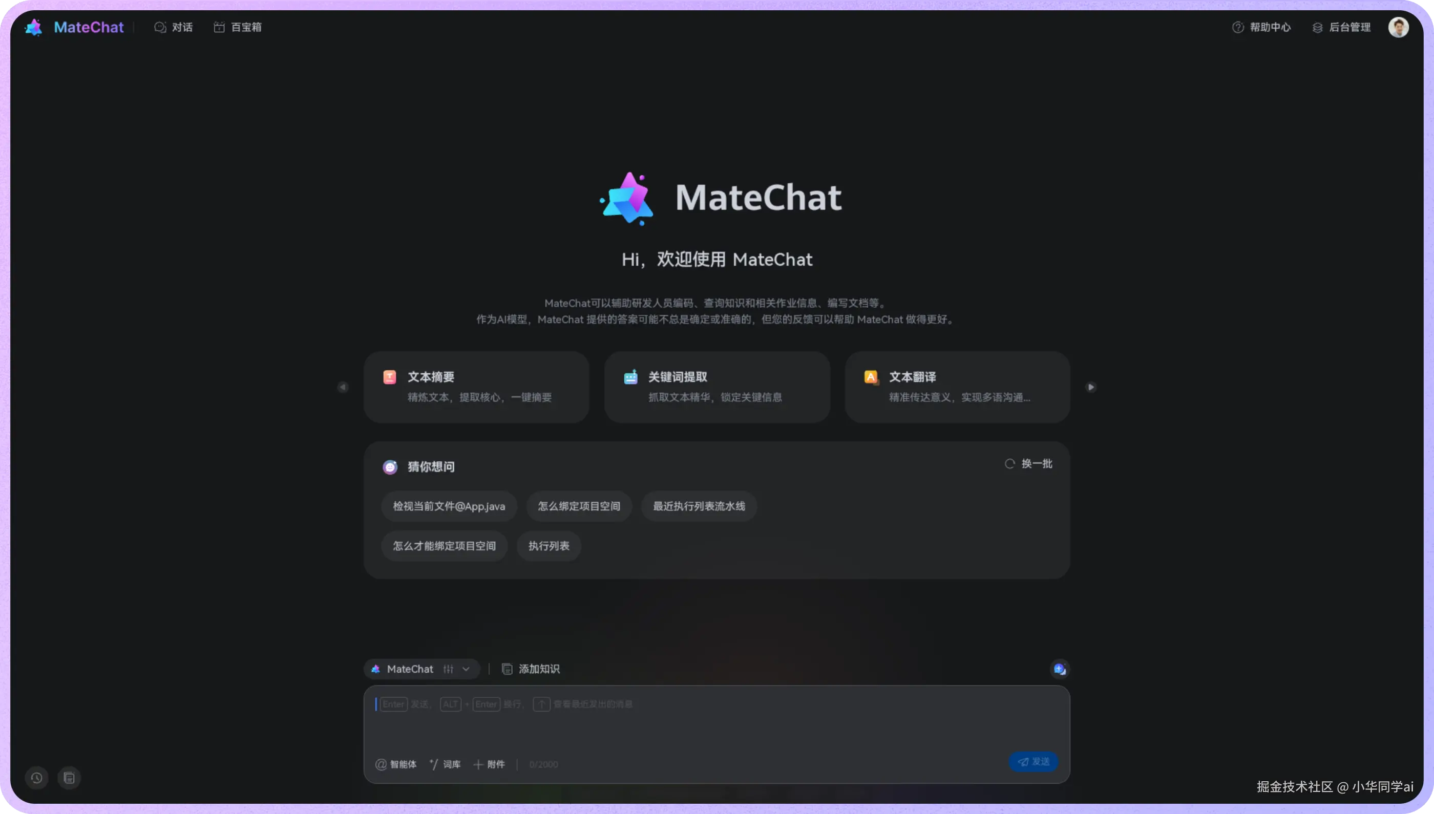 MateChat 一站式解决上述问题,让前端开发者快速拥有专业、统一、体验丰富的 AI 聊天能力。