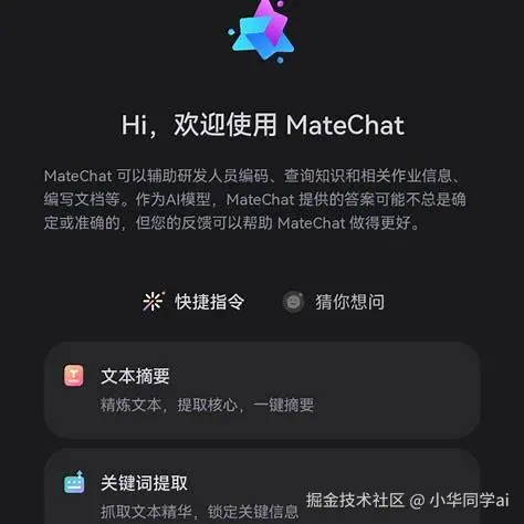 “体验无边界,业务无侵害”,这是 MateChat 的设计初心。一个专为前端研发工具打造的智能对话组件库,已广泛应用于华为内部 CodeArts、InsCode AI IDE 等场景,通过 Vue + TypeScript,快速构建生成式 AI 对话交互界面,覆盖多场景、多主题,支持即插即用。