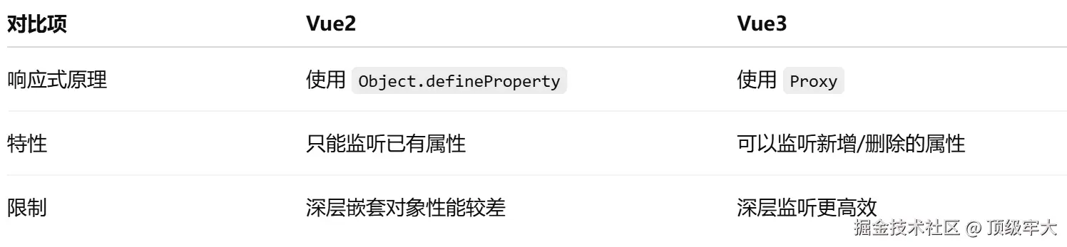Vue3 的响应式系统更加高效和灵活,是底层架构性能提升的关键。
