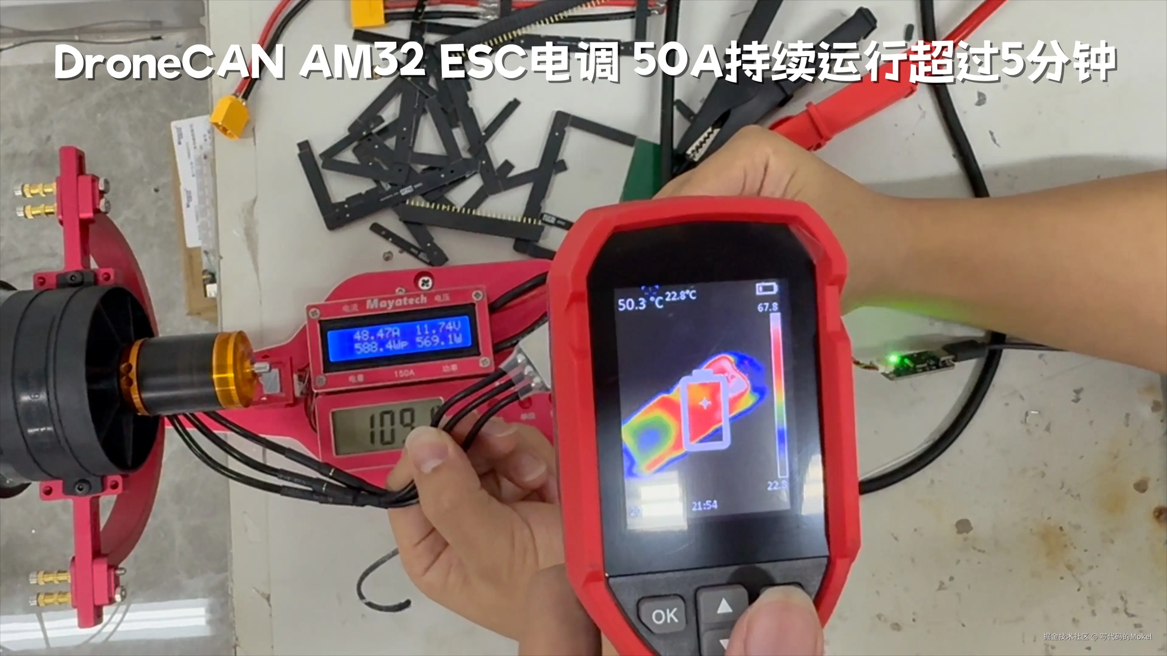 Hello大家好,我是Mokel,这个视频给大家介绍和展示一下Pogo-DroneCAN AM32 ESC电调在40到50A电流情况下的工作情况。