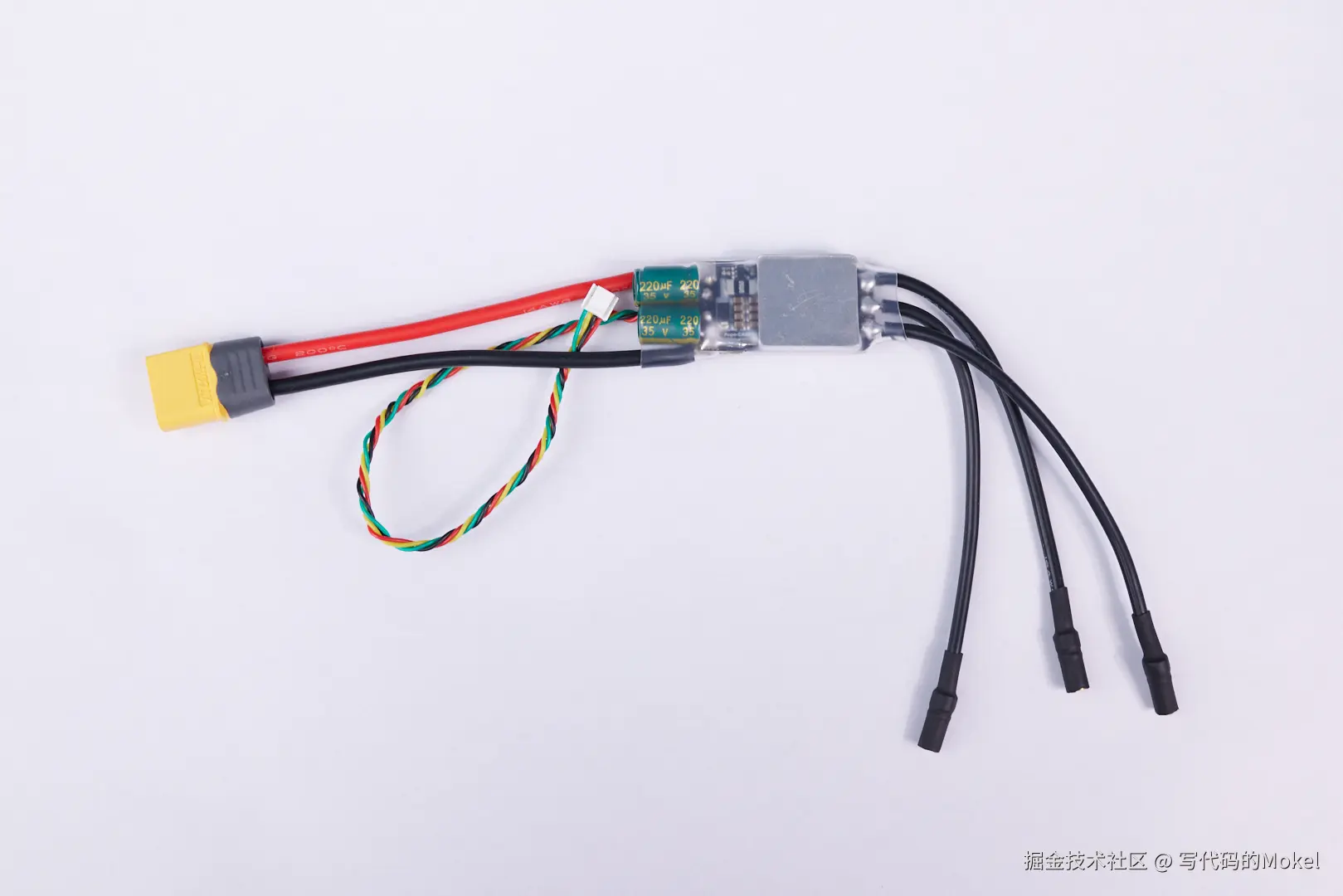 当然了,你可以看到,目前这个电调只是上了一个散热片,并没有做更多的散热处理,如果你的飞机较大,工作电流也比较大,工作环境比较极端,电调散热能力需要进一步提高,你可以联系我们,对此进行相应的定制开发。