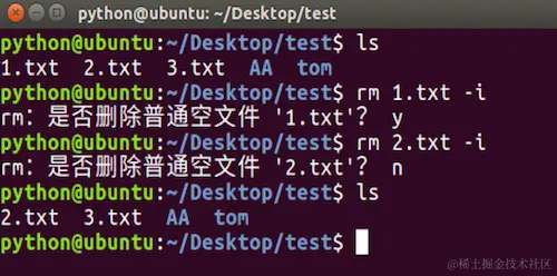 rm -i命令选项效果图: