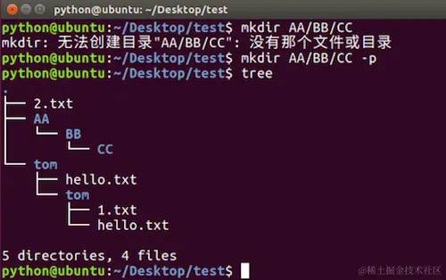 mkdir命令选项效果图: