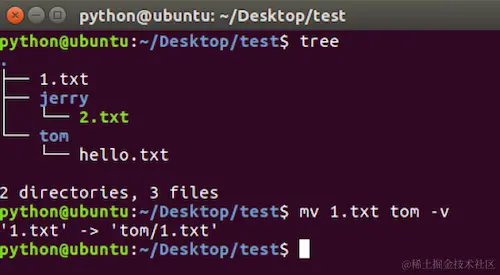 mv -v命令选项效果图: