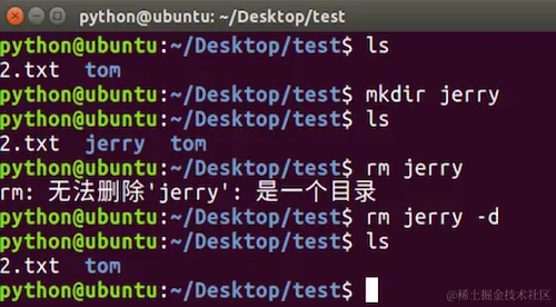 rm -d命令选项效果图: