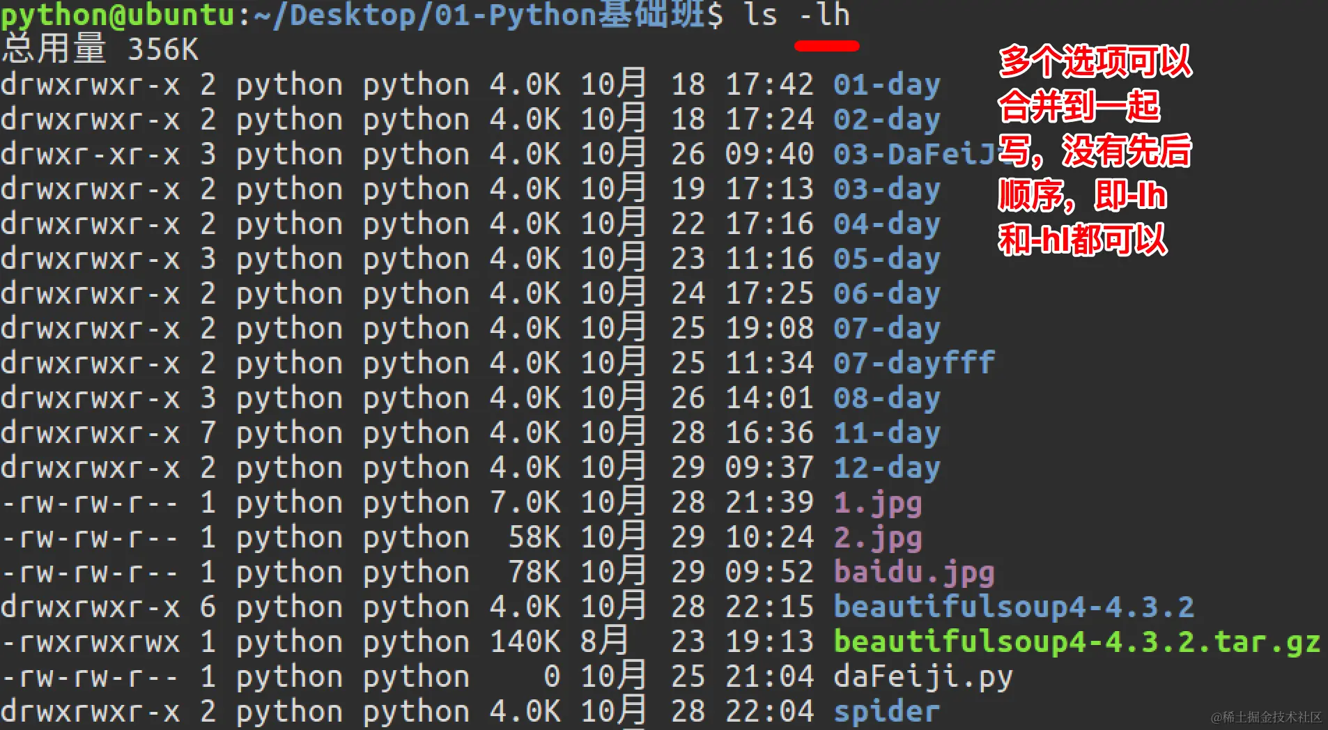 ls命令选项效果图: