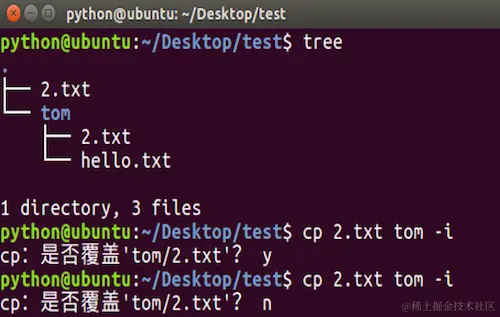 cp -i命令选项效果图: