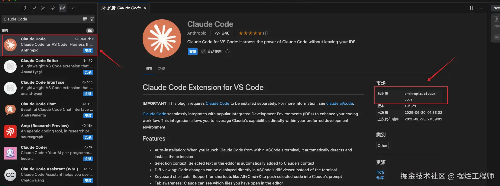如果你是使用官方的Claude Code,可以直接在对应的插件市场,安装对应的 Claude Code。如:VS Code、Cursor 这类IDE都支持。