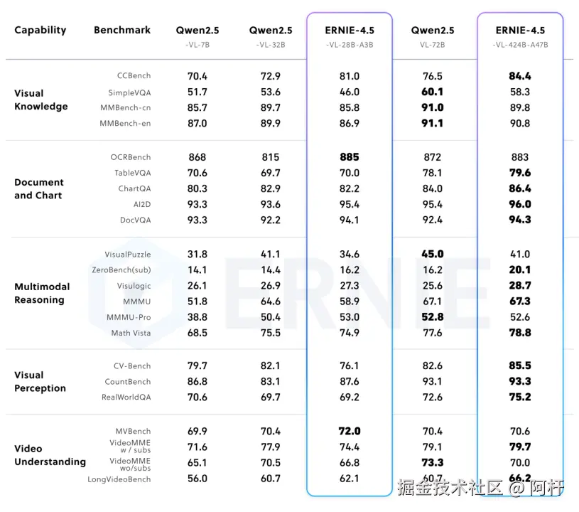 - 文心4.5-VL多模态模型和视觉界的卷王 Qwen2.5-VL-32B 正面对线,不输甚至持平;