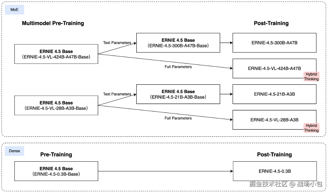 百度文心大模型 4.5 系列开源绝非 Ordinary 的举措,而是一次充满诚意与雄心的技术共享盛宴。本次开源的模型,涵盖47B、3B激活参数的混合专家(MoE)模型,与0.3B参数的稠密型模型等10款模型,构建了覆盖企业级应用到终端部署的完整技术体系。