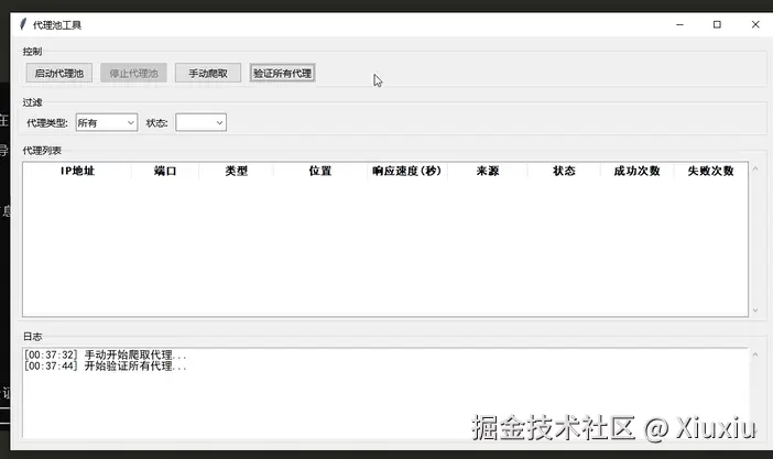 提示词:帮我写一个代理池的工具,可以主动抓取免费代理节点,并测试可用性,最后工具需要有个GUI页面。