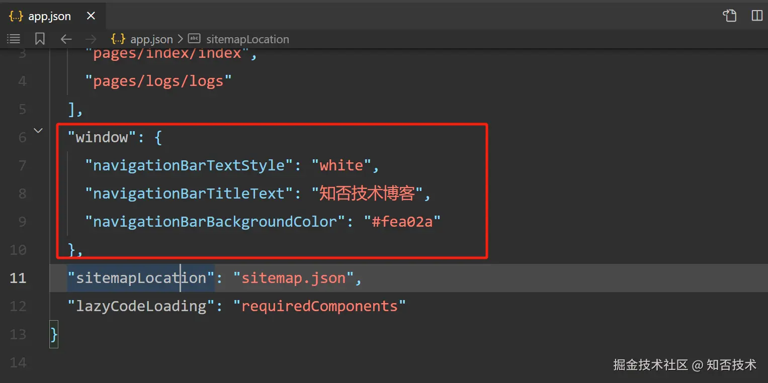 接着在 app.json 里面配置 tabbar 属性。