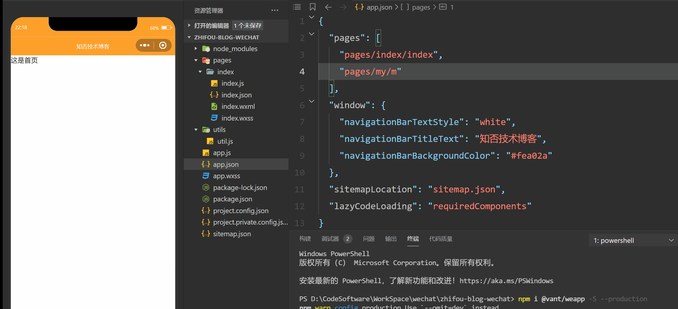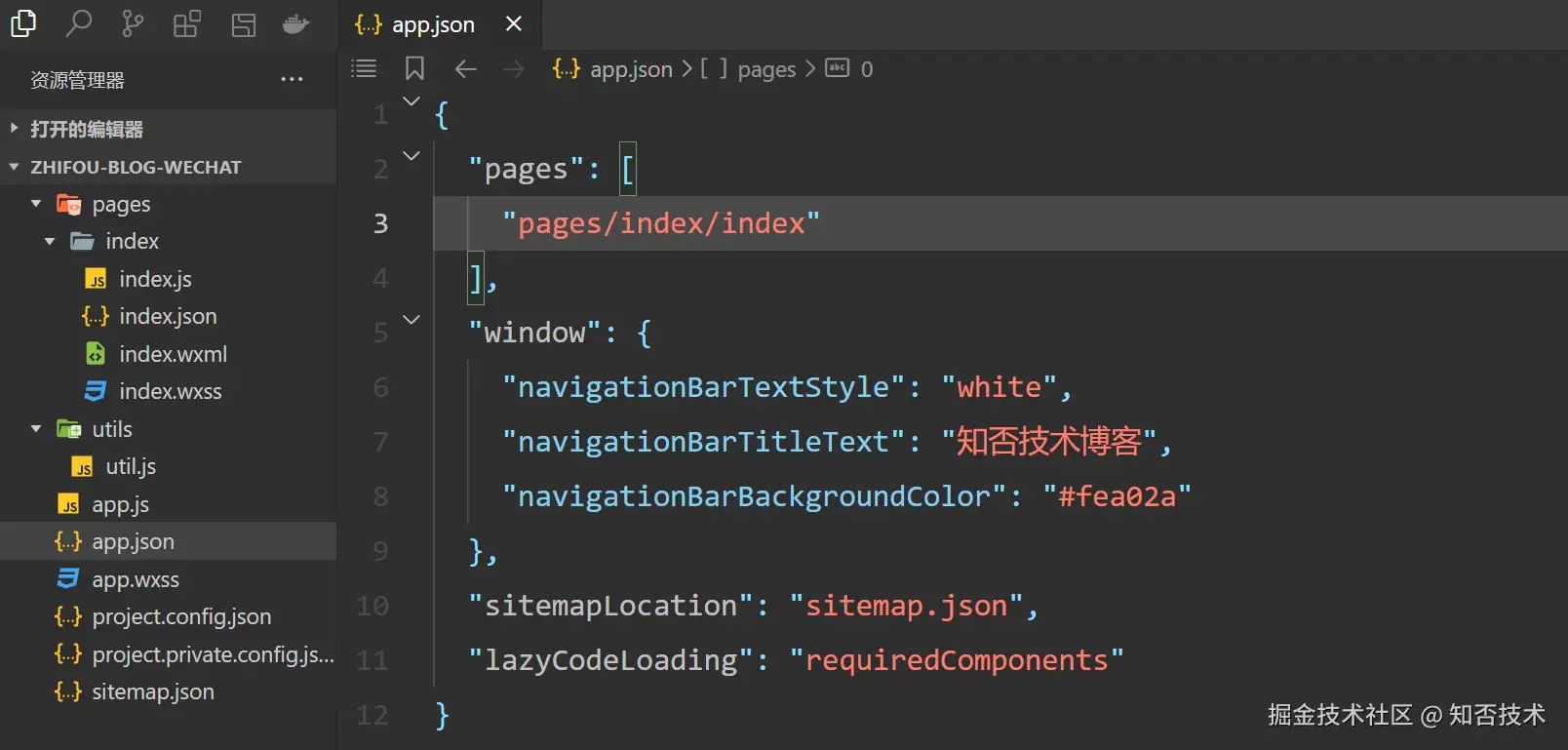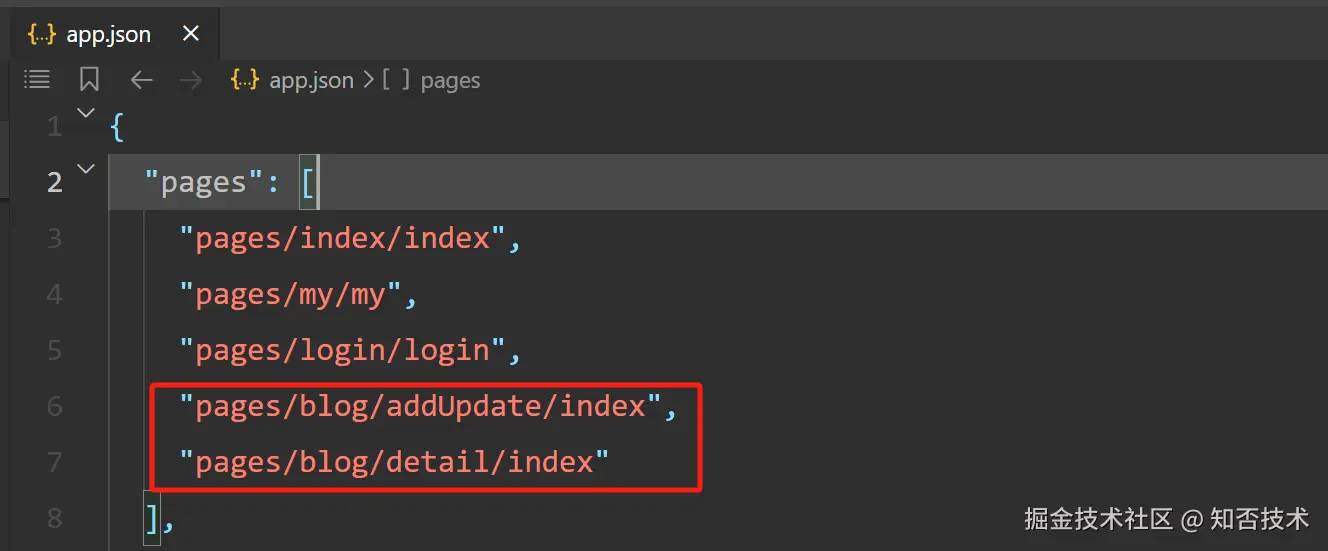 最后再删除 logs 文件夹,修改 app.json 里面 pages 配置