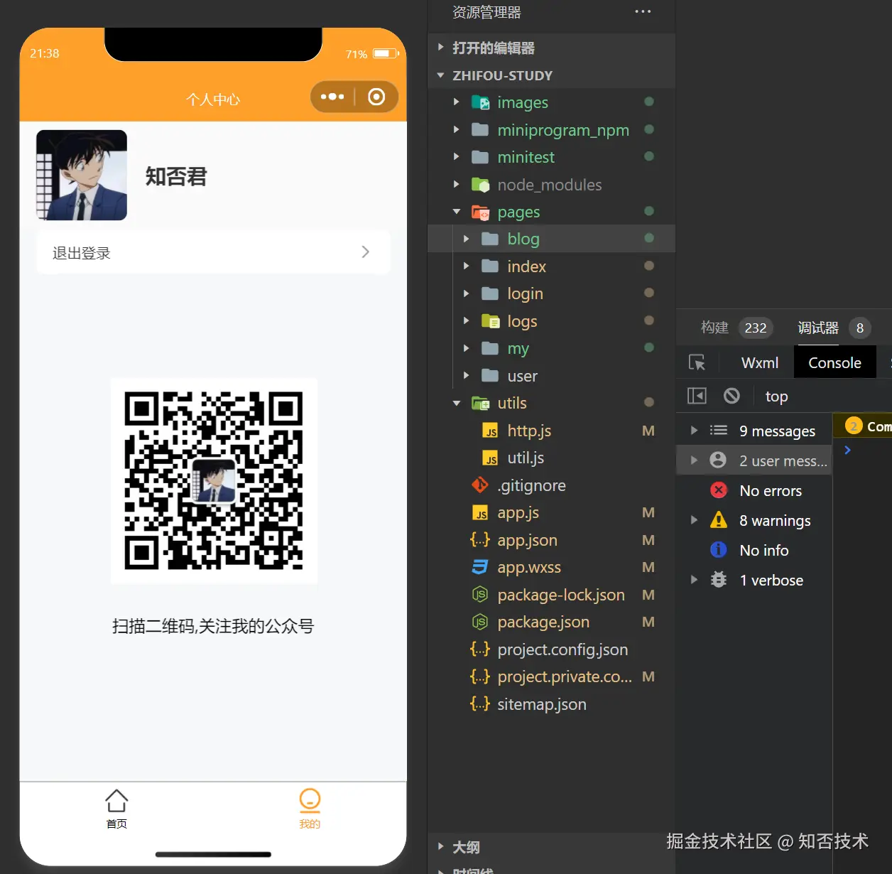个人中心主要是个人信息展示,用户退出功能: