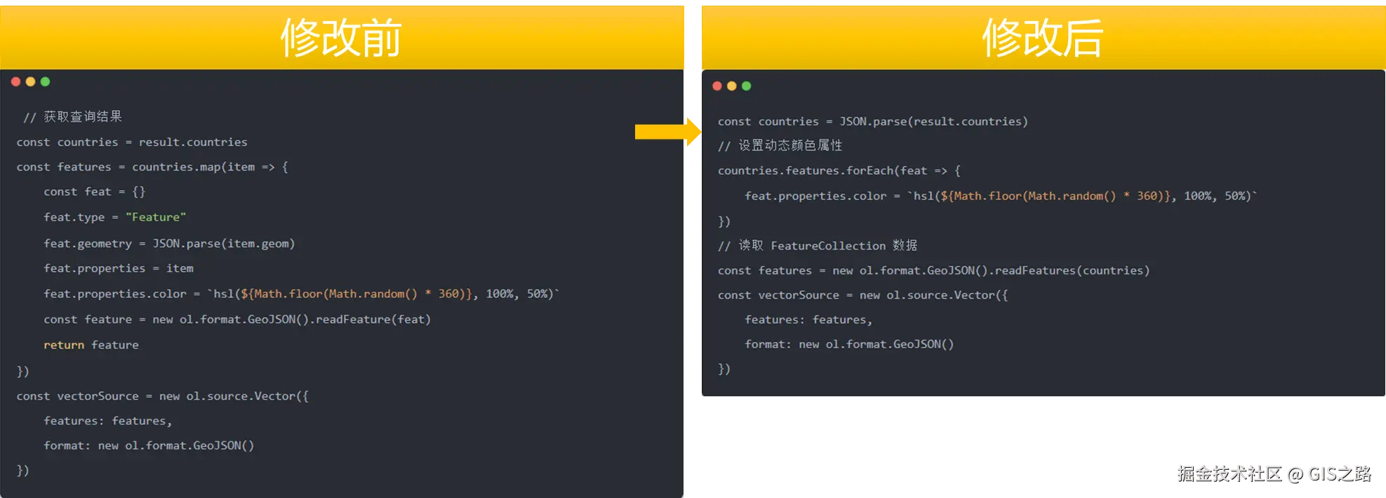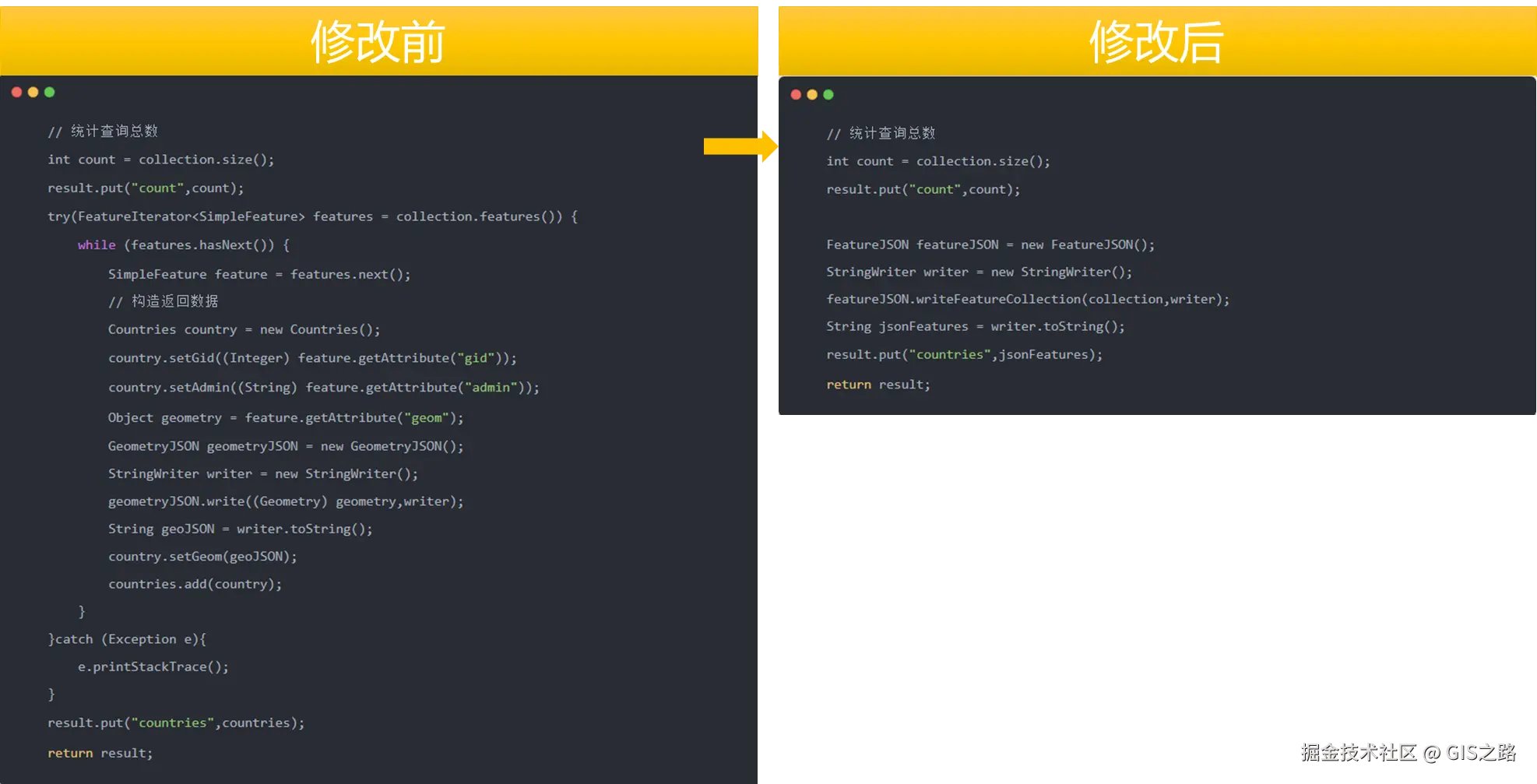 代码修改前后对比图。
