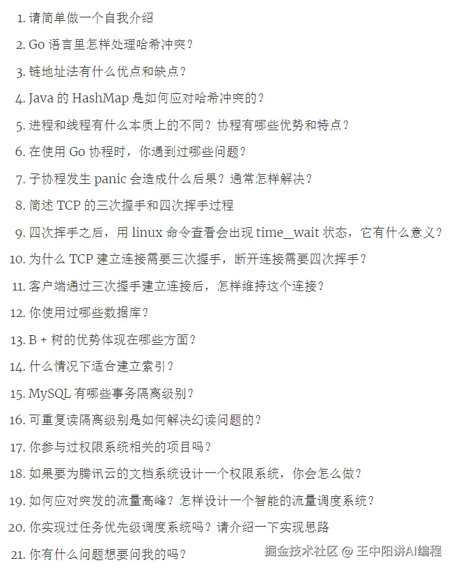 今天分享的是腾讯校招的一面面经,大厂拷问的知识点都很广泛,如果你也准备冲击大厂,一定要做足了准备,语言基础、数据库、缓存、消息队列、操作系统、计算机网络、算法、项目等等,基本上都会问到而且会问的很全很细,而且去大厂面试,要是没通过的话还会有记录,后面还想再去面就难咯。