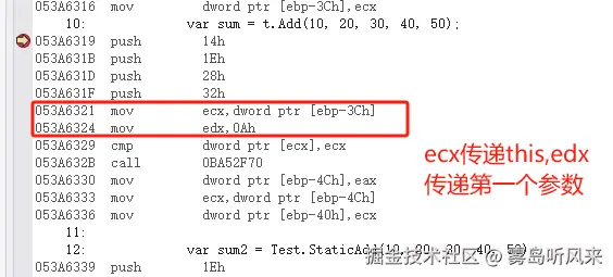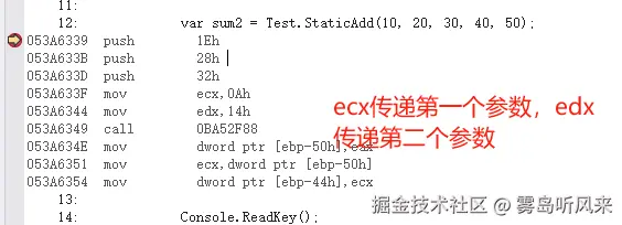 C#在x86下,有自己独特的调用协定