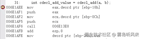 可以看到,cdecl,stdcall是通过压栈的方式将参数压入栈中,而fastcall直接赋值给寄存器,并无压栈操作
