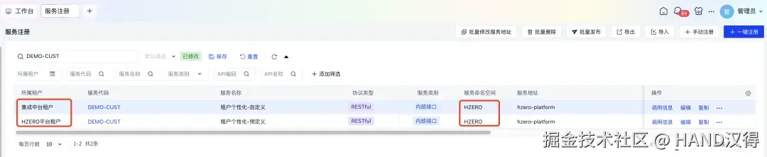 当租户存在差异化逻辑时,由平台克隆一份配置到对应租户,然后租户进行个性化配置;个性化克隆的数据调用地址保持与平台租户一致。