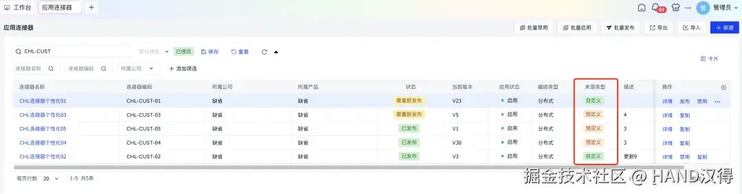 平台已经预定义内置常用连接器给各租户按需使用,租户可按需维护自己的连接器。