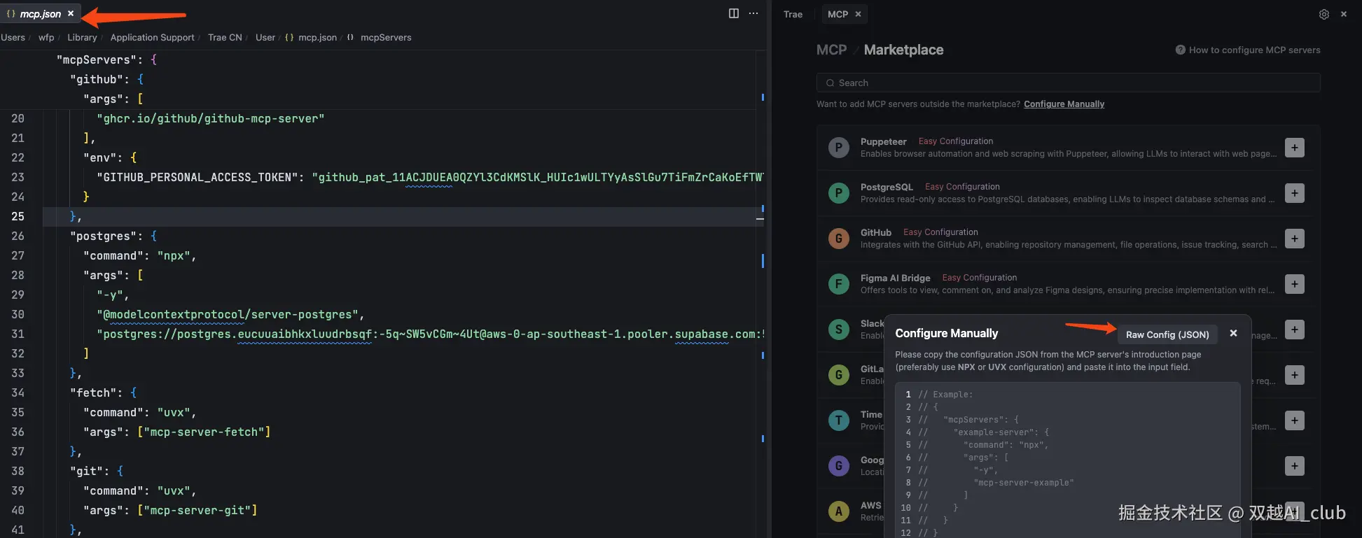 我之前写过一篇文章《编程常用的 MCP server》其中提到很多 MCP server 的配置和使用,例如 Github pgsql browser-tools 等,MCP 可以扩展 LLM 的能力,让它把手伸到其他工具中去执行操作。现在 AI 编程工具都支持 MCP 配置。