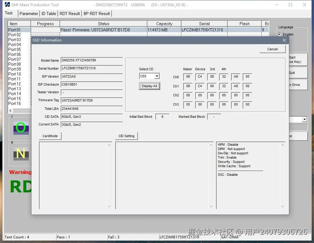 在量产部落找到SM2259XT2的开卡软件(这个网站可以一站式下载量产工具,我一般去量产部落网下载),先跑一下RDT试试,跳P16/17/20/23。