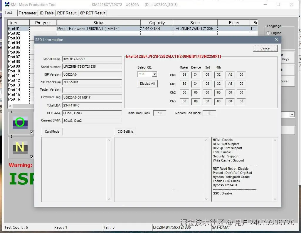 还有,我另一片颗粒,在59XT2上直接卡RESET DRIVE开不过,但是在58XT上可以开过,而且在58XT上可以稳定跑,但是换到59XT2上想跑个RDT都不行,可能还是慧荣现在松懈了,也难怪曾经低端固态是58XT的天下,现在却连别人车尾灯都看不见了。