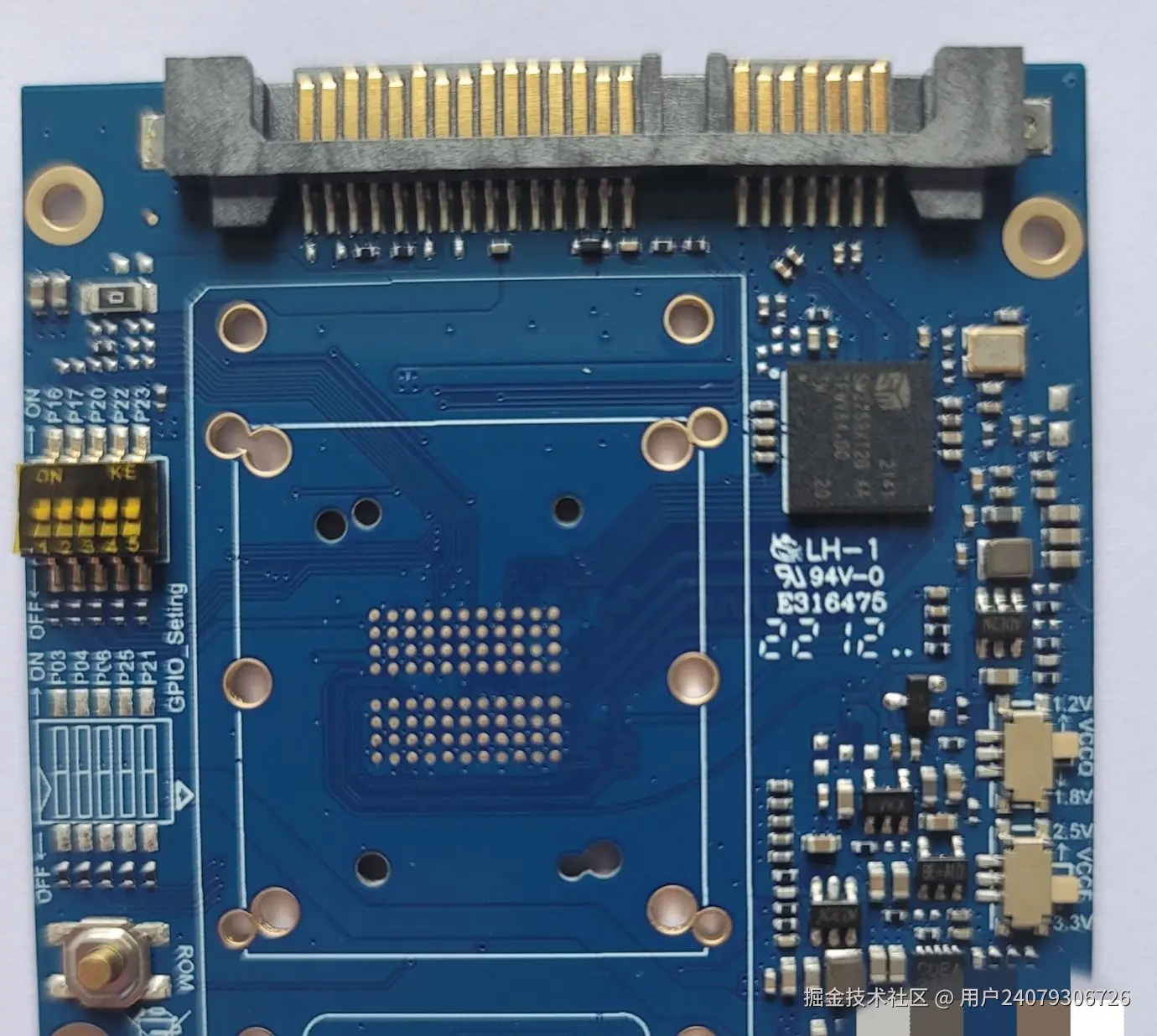 经过了几天的等待,终于拿到了,可以看出架子跳线挺多的。右边是VCCQ电压跳线,支持1.2和1.8,VCC电压跳线支持2.5和3.3。