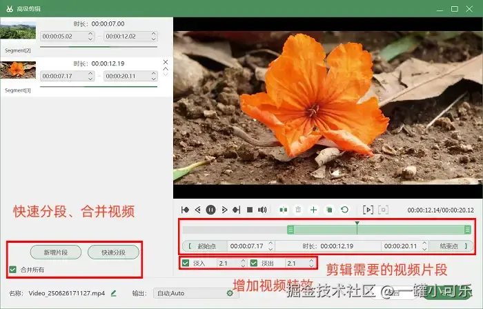 步骤3:结束的时候,会自动跳到预览界面,检查没问题就点保存。如果想给视频加上 “淡出”、“淡入” 特效,可以点击进入 “高级剪辑” 。